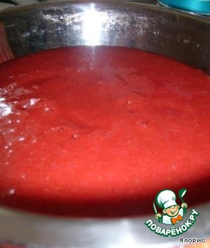 Разводим желатин (примерно полторы пачки)по инструкции и вводим в клубничную массу.
