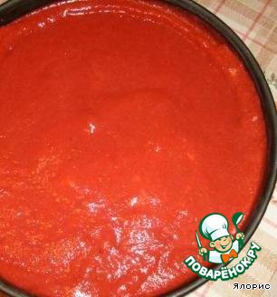 Охлажденный бисквит разрезаем, смазываем внутри клубничной массой (около 1/4 от объема), сверху выкладываем сметанную массу и убираем в холодильник до застывания.