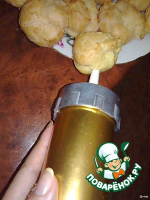 С помощью кондитерского шприца делаем отверстие и начиняем пирожное кремом.