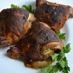 Бёдра запекала без маринада. В остатке маринада потушила овощи. Как раз на гарнир к курице