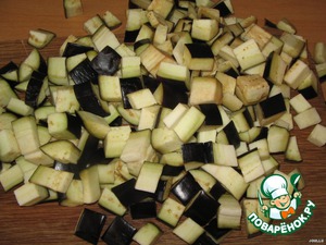 Баклажанчики вымыть и нарезать небольшими кубиками.