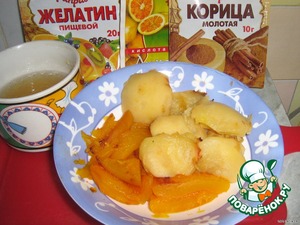 Запечь в духовке (или микроволновке) до мягкости. Желатин замочить в 100 гр. воды (по инструкции).