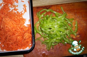 Перец порезать соломкой, морковь потереть на крупную терку.