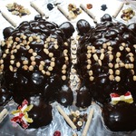 Глазурь: 3 столовые ложки сахара, 50 грамм сливочного масла, 1 столовую ложку какао поставить на водяную баню. Готовить до однородной массы.