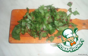 Теперь режем листочки таким образом и кладем в готовый суп. Провариваем еще не более 5 минут. Еще раз пробуем на соль и специи. Все выключаем и даем супчику настояться.
