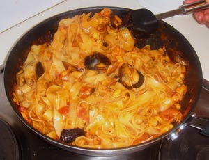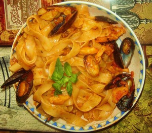 Рецепт «Феттучини "Катамаран" с морепродуктами и томатным соусом»: