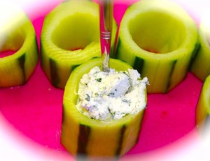 Оставшиеся серединки огурцов вместе со сметаной, солью, перцем разбиваем в блендере