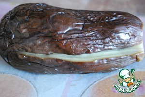 После того, как сварили баклажаны, режем их вдоль, но не до конца.