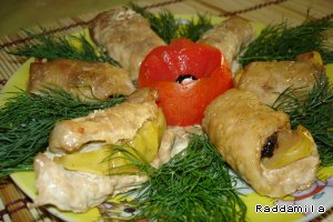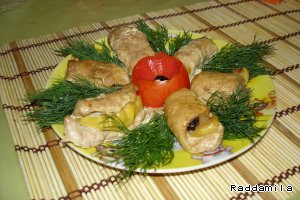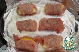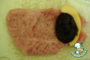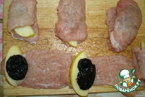 Рецепт «Свиные рулетики с черносливом и яблоком»:
