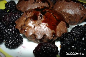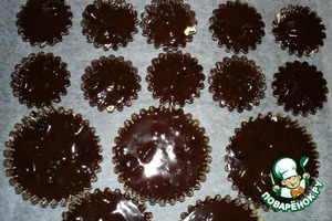 Смазать формочки сливочным маслом (маргарином), распределить шоколадную массу и выпекать 20 минут (время указано для формочек в диаметре 5 см).