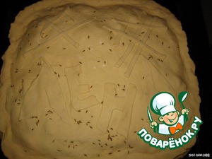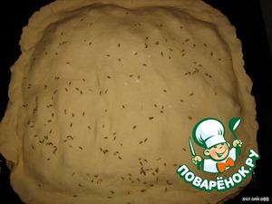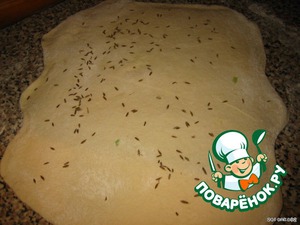 • На тесто насыпаем тмин или зиру и раскатываем, чтобы приправа оказалась в тесте)))