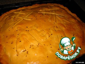 Пирожок-суперский,а я в капустку ещё и яйцо варёное добавляю,мелко порубленное.А что там написано на пироге?