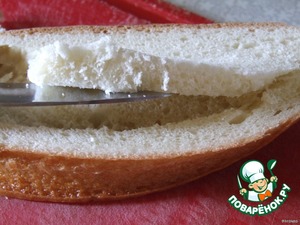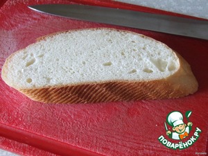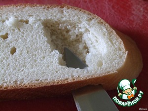 Отрезаем кусочек белого хлеба. Кусочек отрезать потолще, наверно, сантиметра 2 - 2,5.