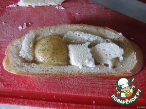 Вот и получилась "корзиночка" из хлеба. Разбиваем туда яйцо, солим и перчим.