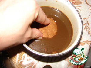 Обмакиваем печенье в пропитке, но только не долго иначе оно размокнет и развалится прямо в руках.