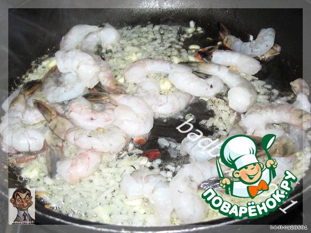 ..кладем креветки, жарим 1-2 минуты, просто зависит от ваших креветок, величины газа, сковородки, короче - начали немного краснеть...