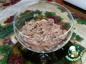 Слой четвертый - снова мясной. Ведь салатик у нас - мясной, а значит мяса в нем должно быть больше других ингредиентов.