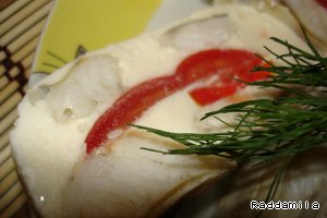 Укладываем половину судака.