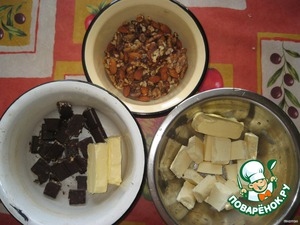 - Масло сливочное (100гр-на первый слой, 100гр-на второй слой, 100гр-на третий слой) — 300 г