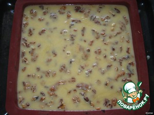 посыпать сверху орехами, равномерно их распределить...