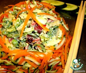 Теперь заправляем соусом нарезанные болгарские перцы и выкладываем в корзиночку!