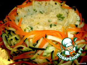 Картофель и морковь отварить, остудить. Картофель натереть на терке.