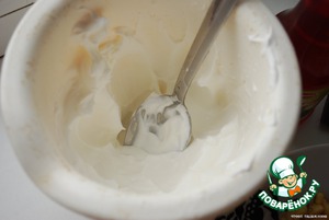 Жирные сливки (33% ) взбить с 1 ст. л. сахарной пудры.