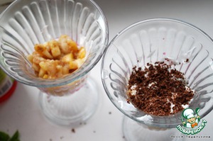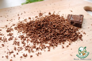 Сверху капнуть сиропом, посыпать шоколадом. Подавать охлажденным.