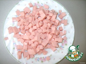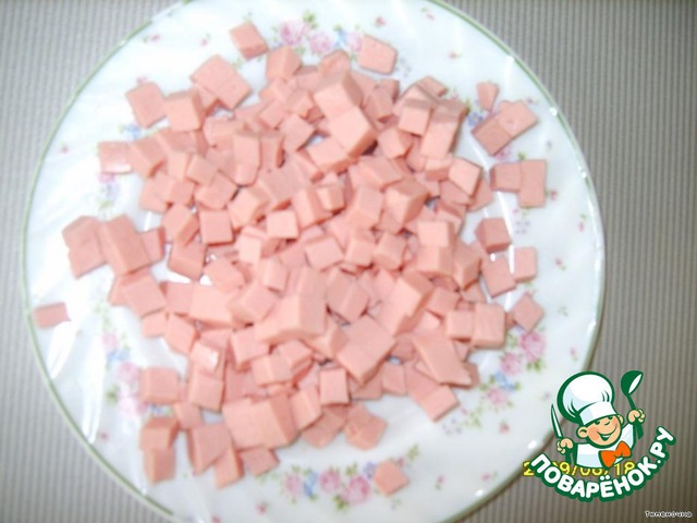 правда, вместо колбаски кладем ветчину или какое-то копченое мяском....