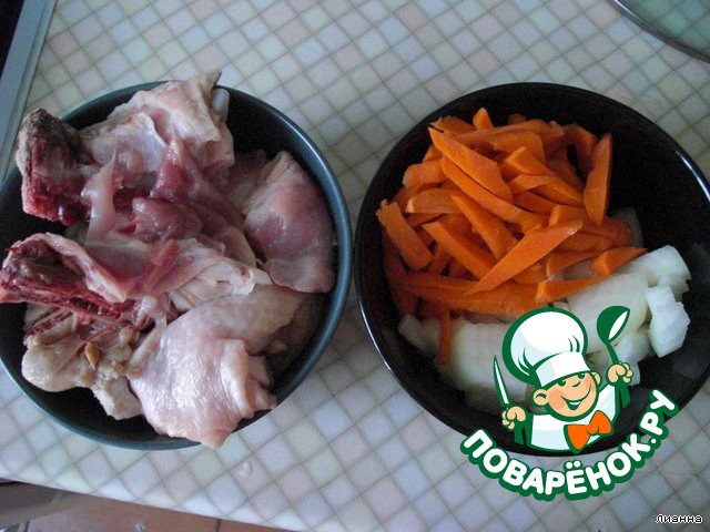 - Курица (голени и другие жирненькие куски) — 500 г