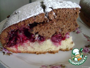 1/3 часть теста вылить в смазанную форму,сверху положить вишню