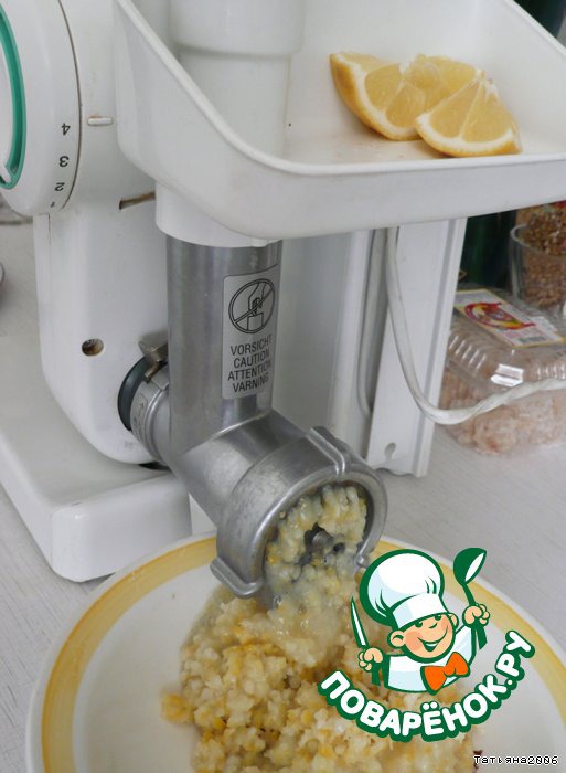 Затем порезать на куски и пропустить через мясорубку или измельчить блендером.