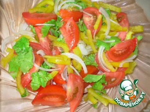 В тарелке аккуратно смешать все овощи. Слегка посолить и поперчить.