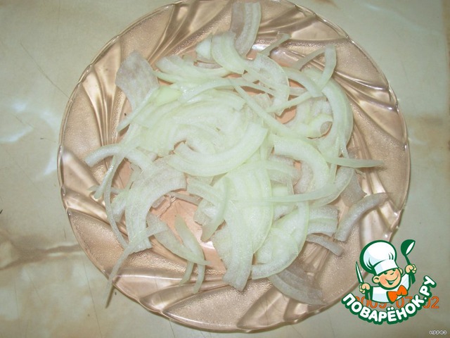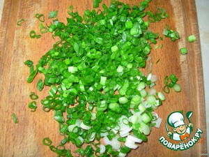 Листья салата порвать руками, зеленый лук нарезать колечками.
