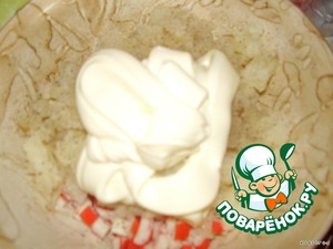 соединить с измельченным отварным картофелем, посолить, поперчить