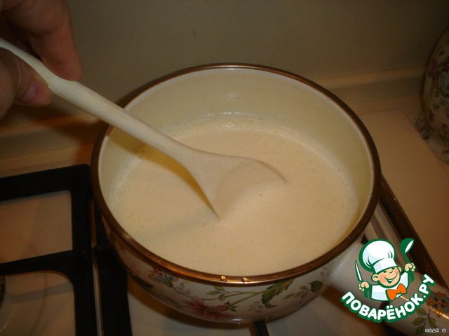 Отставьте крем в сторону. Пусть слегка остынет, в дальнейшем нам будет нужен теплый крем