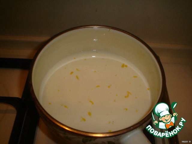 Если вы хотите сделать ванильный крем, опустите в молоко половину ванильной палочки на 20мин. Если нет, то натрите цедру лимона или апельсина в молоко и поставьте его на огонь. Доведите молоко до кипения.