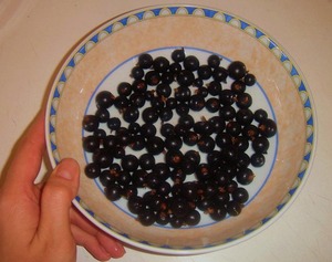 • Тем временем займёмся ягодами. Чёрную смородину промываем.