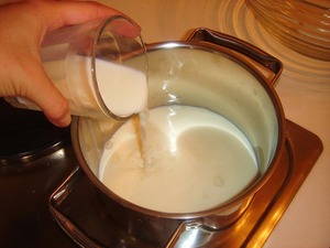 Молоко выливаем в кастрюльку и доводим до кипения.