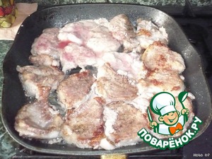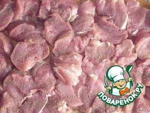 Свинину нарезать небольшими кусочками, посолить, поперчить