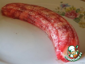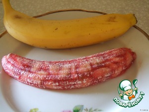 Берем банан, сверху надрезаем кожуру ножом так, чтобы можно было вытащить сам банан. Аккуратно вытаскиваем банан, не повредив кожуру.