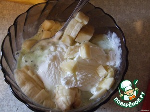 Что-то меня понесло на приготовление десертов в их кожуре. Если до этого был только банан, то теперь добавилось и киви. И все это для конкурса "Сладкий вкус лета".