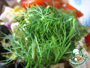 Добавить оливки, нарезанные на 2-3 части и сыр "Фета" - кубиками.