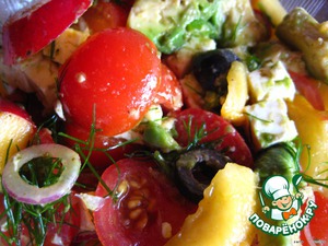 И по желанию можно добавить нарезанный дольками персик, для тех, кто любит добавлять фрукты в овощные салаты.