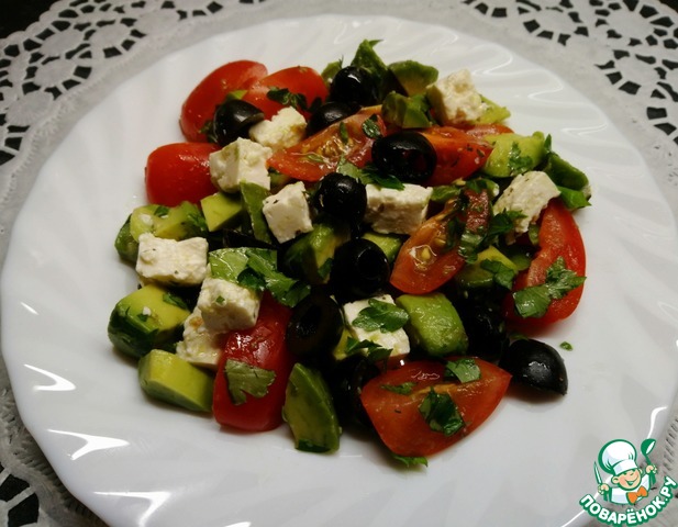 Салат с помидорами, авокадо, черными оливками и сыром фета - вкусно, полезно, диетически и в то же время достаточно питательно. Желаю всем здоровья и хорошего настроения!