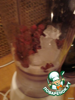 Добавляем сахарную пудру, несколько кубиков льда и хорошо взбиваем.