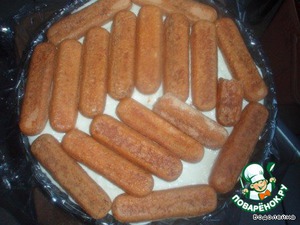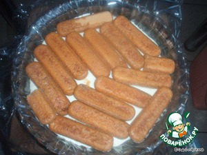 • Дальше кладем смоченное в кофе печенье.
