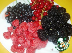 - Ассорти ягодное (свежее или консервированное, шелковица, черника, малина, красная смородина) — 200 г