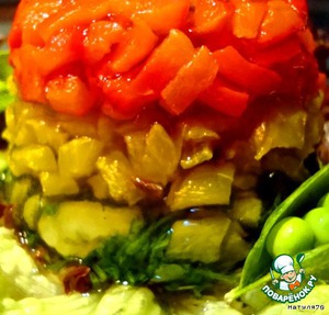 • Последний слой - зеленый перец и мелконарубленная зелень петрушки.