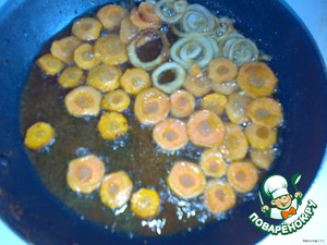 Морковь и лук также трем на терке, чтобы получились кружочки. Обжариваем после кабачков в масле также, до золотистого цвета.Это лучок